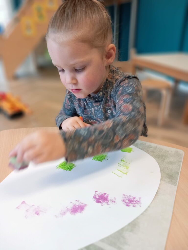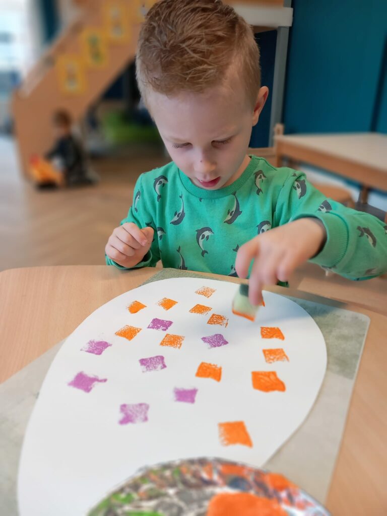 Binnen beginnen we met Paasactiviteiten. Hierover knutselen, zingen en lezen we. De kinderen vertellen hun eigen idee over Pasen. En hier leren wij weer van. Elk kind heeft een ander idee over Pasen. Zo leuk!